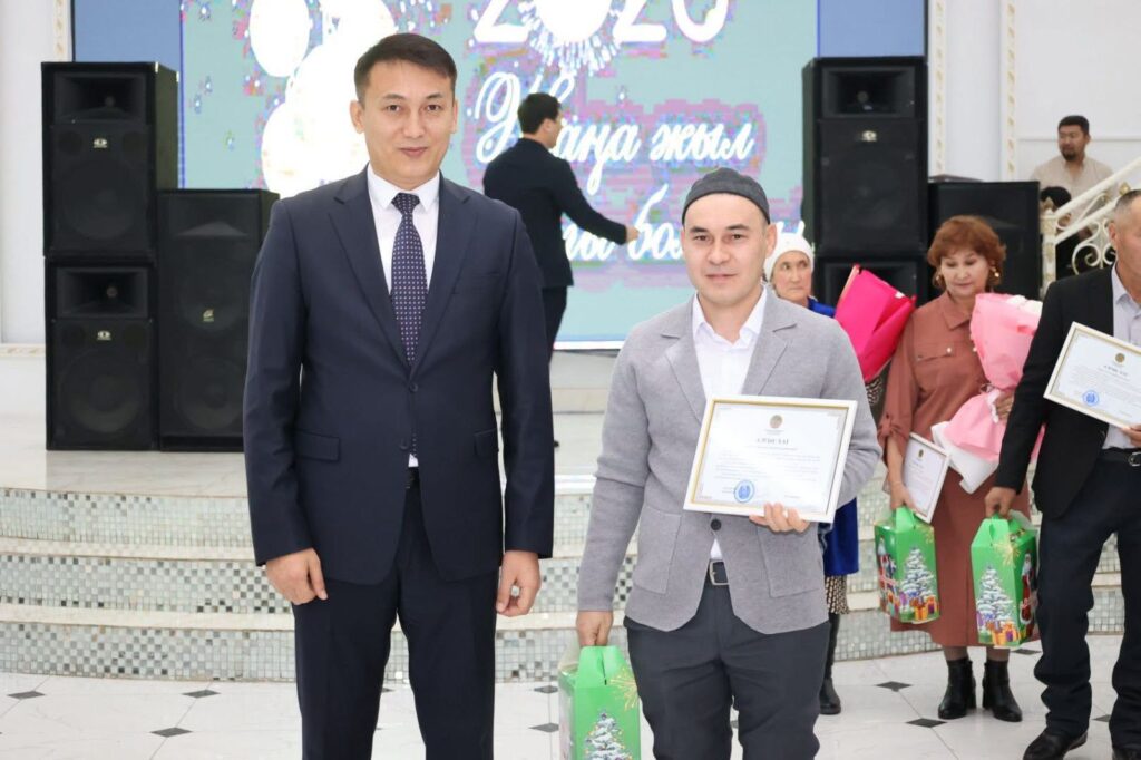 - Жалпақ жұртты іргелі істерге бағыттап, кең ауқымды жұмыстар іс тындыру үшін қоғамға пайдалы кез келген мамандық иесі құрметтелуі керек. Әр салада кәсіби біліктілік пен мамандыққа адалдықтың шынайы үлгісін көрсетіп жүрген сіздердің ерен еңбектеріңіз қандай құрметке болса да лайық. Ғұмырын еліміздің өркендеуіне арнаған еңбек ардагерлеріне, аға буынның тәлімгерлік жолын жалғап ерен еңбектің үлгісін көрсетіп жүрген азаматтарымызға зор ризашылығымды білдіремін! Жаңа жыл барлықтарыңыздың отбасыларыңызға шаттық сыйласын,- деді аудан әкімі өз сөзінде, — деді аудан әкімі.